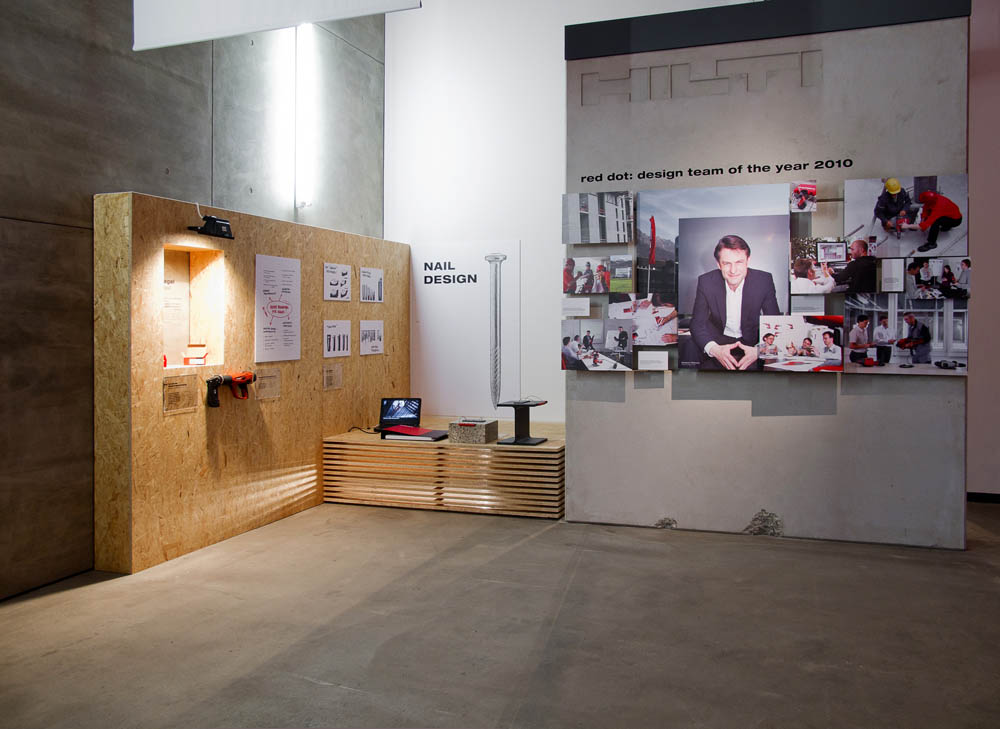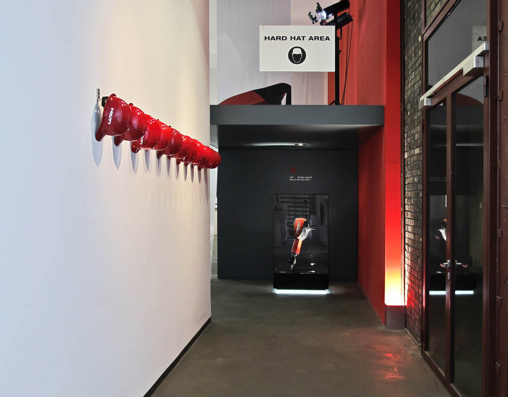 With Triad (Berlin/ Cologne, Germany) we designed the exhibition for the “red dot: design team of the year 2010” award, which was won by the tool manufacturer HILTI who wanted to showcase their approach on industrial design. I was responsible for concept together with Andreas Horbelt and for overall design and implementation.