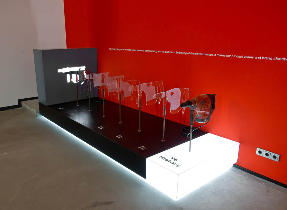 The Hilti design mission statement on the red wall gives an insight into the aims and approach of Hilti product design.