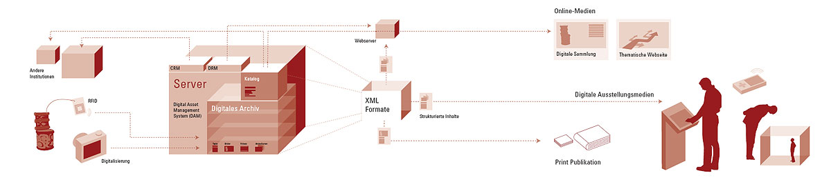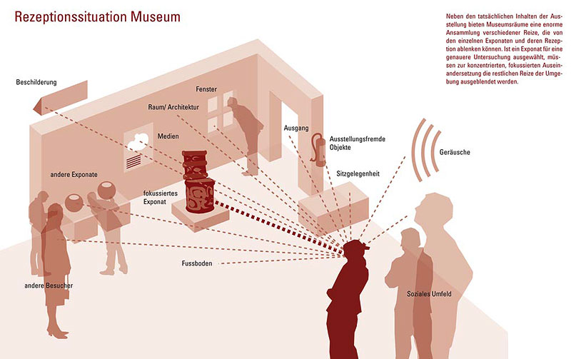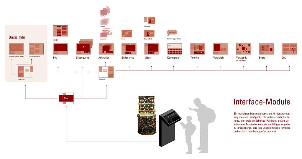 This kind of modular information structure enables dynamic interplay between visitors, exhibit and information system through various cognitive channels (reading, sensing, interacting).