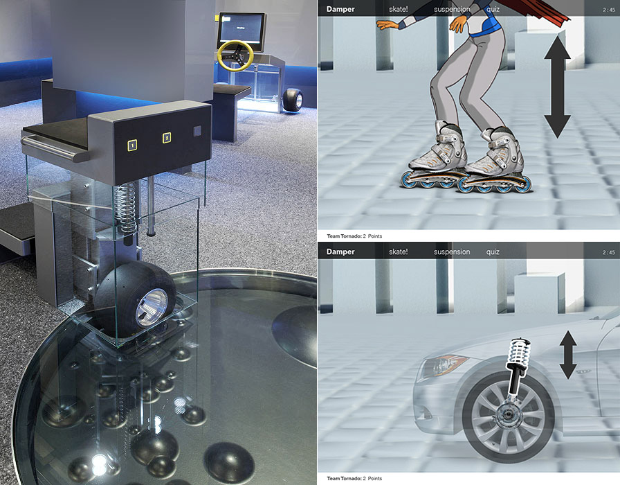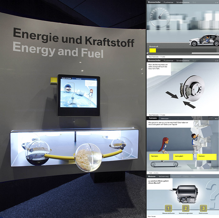 What follows is a round trip through the inner workings of a car: Each interactive station lets them actively experience the physical principles that drive modern mobility.